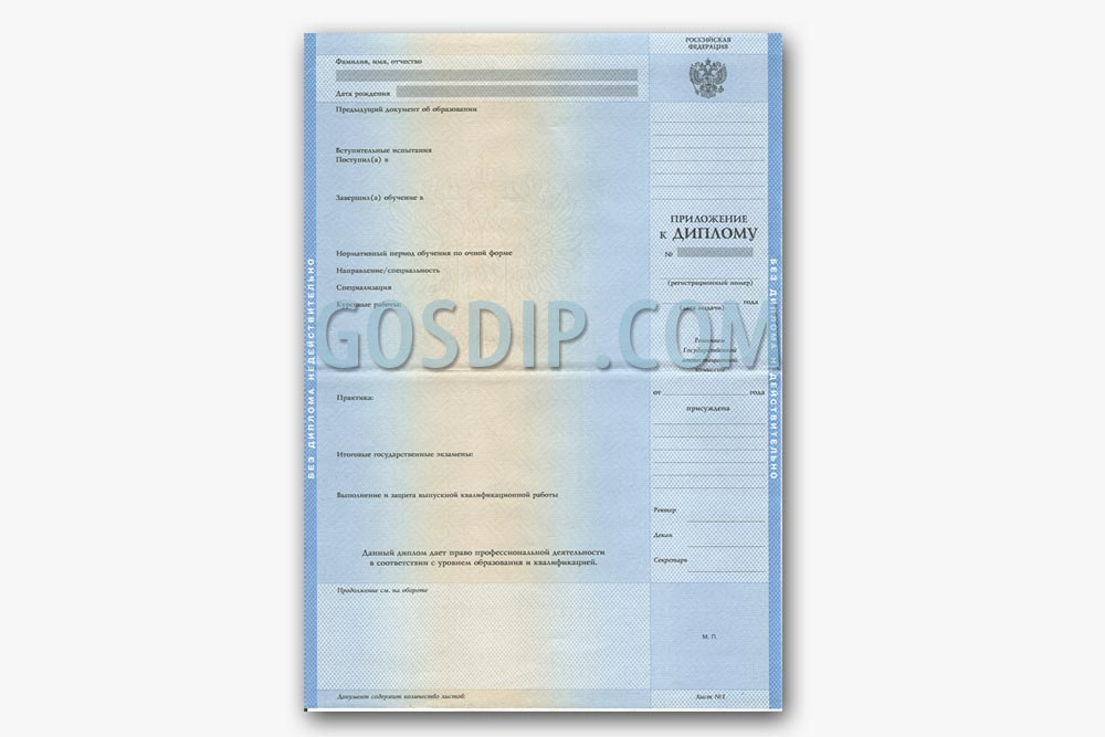 Ниже представлен диплом первого Российского образца с символикой РФ, пришедший на замену советским дипломам в 1997 году. Бланк диплома прикреплен к твердой обложке с помощью клея. Представленные выше бланки точно соответствуют всем техническим требованиям, принятым Министерством образования и науки РФ. Заполняем внимательно, профессионально по стандартам того периода и по реально выданным образцам. Индивидуальный подход к каждому клиенту!